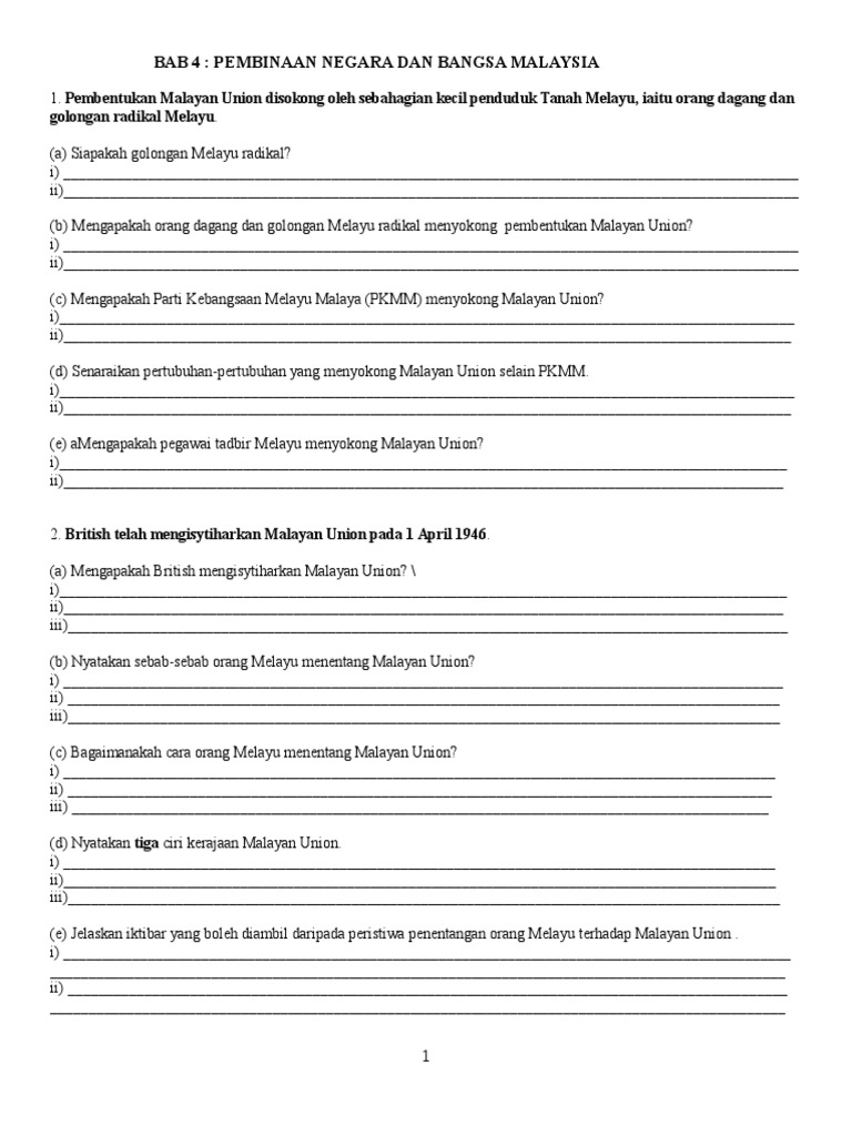 Para pelajar juga boleh dimaklumkan bahawasanya penentangan penduduk tempatan terhadap kuasa asing bukan bermula pada abad ke-19 bahkan melangkaui abad-abad terkebelakang iaitu sejak pertembungan dengan Portugis pada awal abad ke-16 dan Belanda pada abad berikutnya. Pada tahun 1891 Dato Bahaman mengetuai serangan terhadap British dan berjaya menawan Lubuk Terua. Tanpa usaha mereka nescaya Malaysia hari ini tidak terbentukJusteru kita hendaklah berusaha memajukan negara dan bangsa Malaysia.