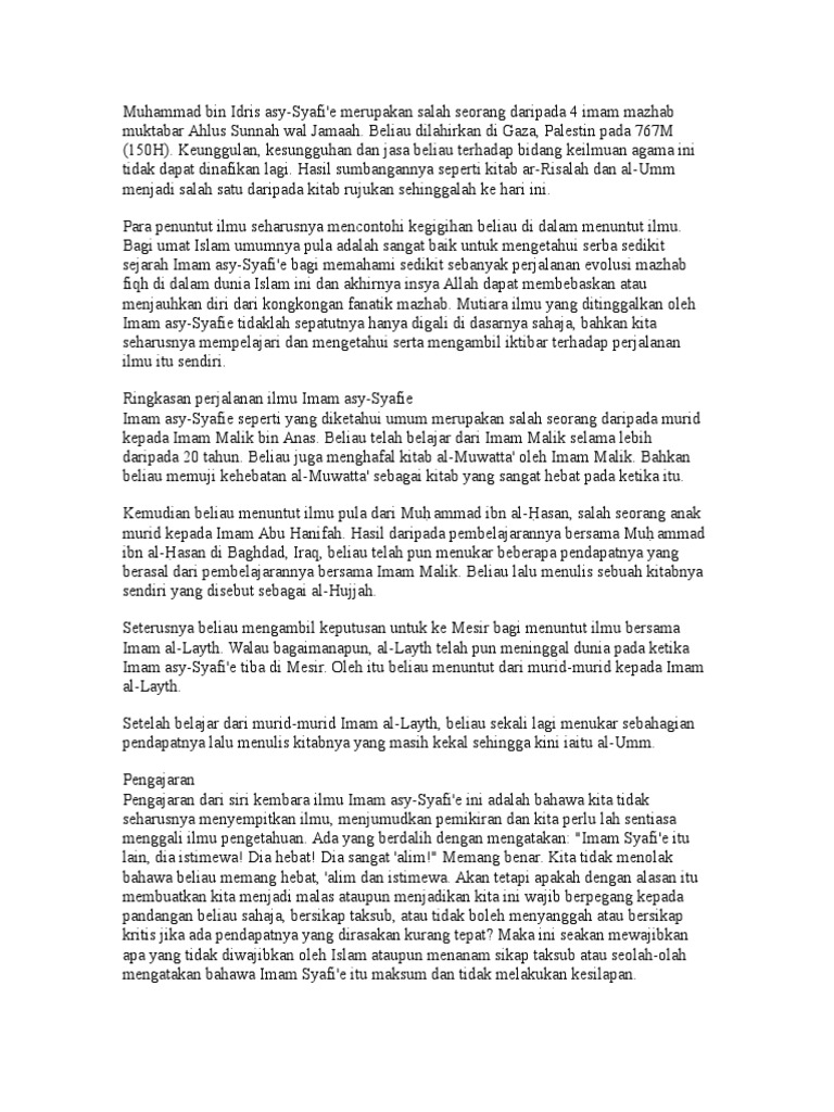 Kegigihan Imam Syafie Menuntut Ilmu Pdf
